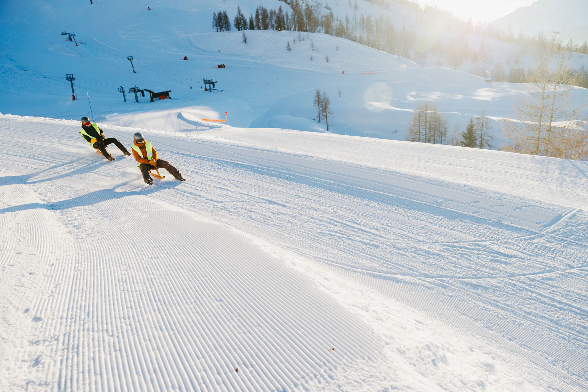 Ready to try a traditional wooden sled? Hop on a Paret, a classic single-blade seat, for a unique downhill adventure. Get ready for speed, laughs, and a magical atmosphere once the ski slopes have closed! ⚡️