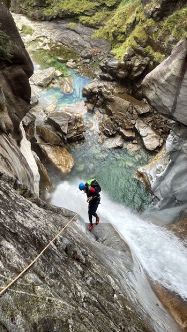 ✔️ Solide bagage technique — cordiste de métier, 5 saisons de pratique canyon avant le diplôme