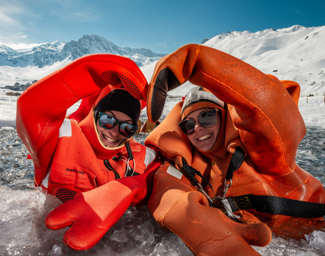 Plongez dans la sérénité avec notre expérience Ice Floating spéciale duo : un moment suspendu, en apesanteur sur les eaux glacées du lac de Tignes.